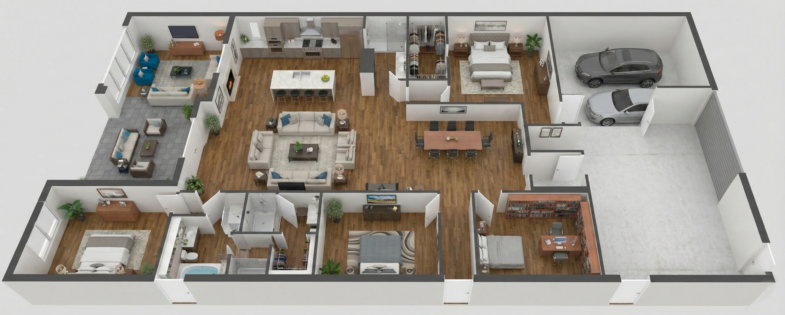 A 3D floor plan takes that flat diagram and extrudes it. It adds height to the walls, depth to the windows, and critically, it adds context. Often rendered in perspective (usually a bird’s-eye view), these plans include flooring materials, furniture arrangements, and sometimes even lighting and decor.